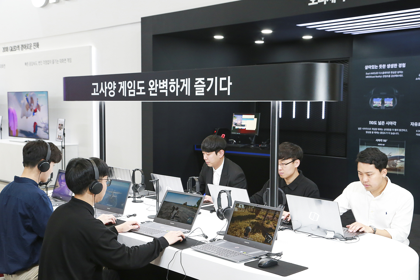 삼성전자는 '갤럭시 S9'과 '갤럭시 S9+', '2018년형 삼성 QLED TV', '삼성 노트북 오디세이 Z', '삼성 노트북 Pen' 등을 중심으로 관람객들이 직접 다양한 기능을 체험해 볼 수 있도록 전시장을 꾸몄다.