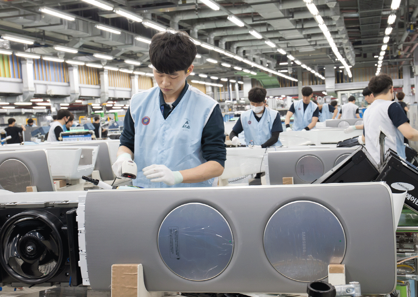 성수기 맞은 삼성전자 무풍에어컨, 공기청정기 생산 현장