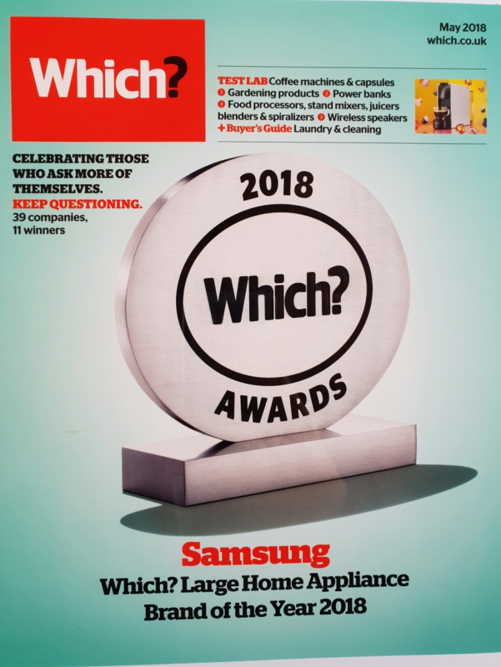 삼성전자가 영국 최고 권위 소비자연맹지 '위치(Which)'지가 주관하는 '위치 어워드(Which Awards) 2018'에서 '올해 최고의 대형가전 브랜드(Large Appliance Brand of the Year)'로 선정됐다.