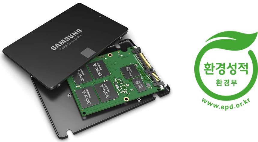 삼성전자가 '4세대 512Gb V낸드'와 소비자용 SSD '860 EVO 4TB' 두 제품에 대해 환경부로부터 '환경성적표지' 인증을 획득했다.