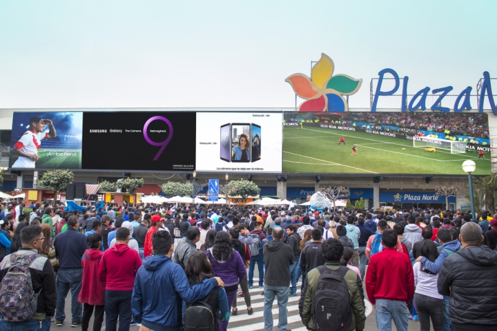 삼성전자는 4일(현지시간) 페루 리마에 위치한 프리미엄 쇼핑몰 플라자 노르떼(Plaza Norte)에 중남미 최대 크기의 고화질 LED 사이니지 옥외 전광판을 설치했다.