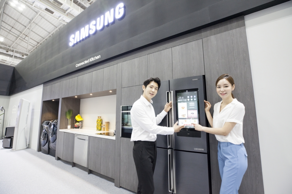 삼성전자는 거실·주방·현관 등 사용자들이 일상에서 접할 수 있는 환경을 전시장에 구성해 실제 활용 가능한 ‘홈 IoT’ 서비스를 다양한 시나리오로 시연했다.