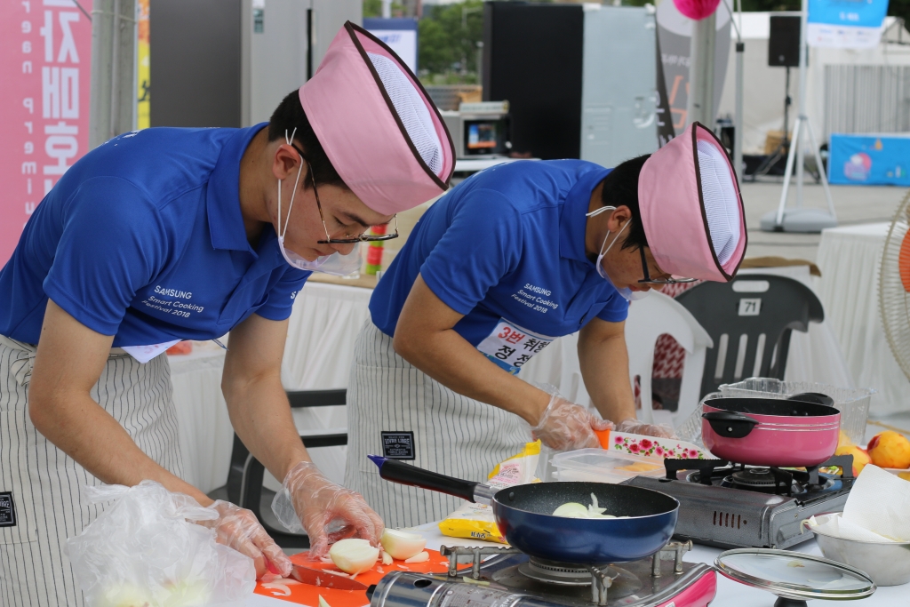 삼성전자가 22일 광주 아시아문화전당 하늘마당에서 지역 저소득 청년을 대상으로 ‘제 2회 삼성 스마트 쿠킹 대회’를 개최했다.