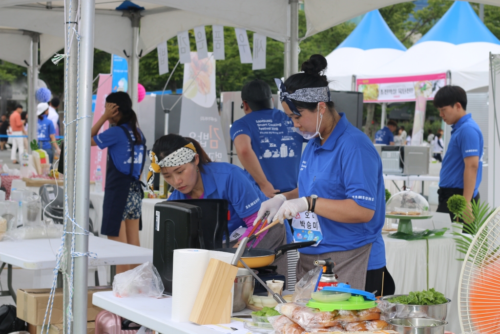 삼성전자가 22일 광주 아시아문화전당 하늘마당에서 지역 저소득 청년을 대상으로 ‘제 2회 삼성 스마트 쿠킹 대회’를 개최했다.