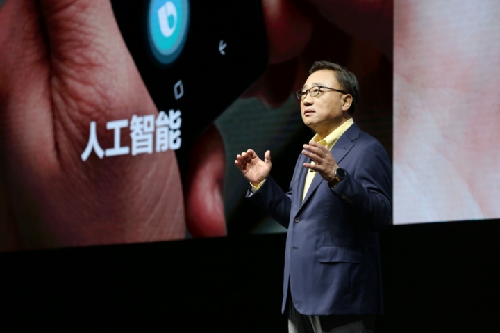 ▲ 지난 15일(현지시간) 중국 상하이에서 진행된 ‘갤럭시 노트9’ 출시 행사에서 IM부문장 고동진 사장이 ‘갤럭시 노트9’을 소개하는 모습