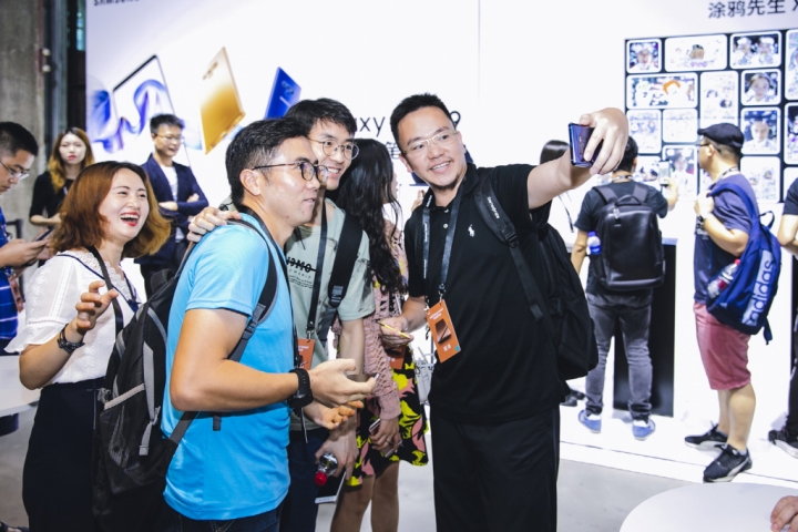 ▲ 지난 15일(현지시간) 중국 상하이에서 진행된 ‘갤럭시 노트9’출시 행사 참석자들이 ‘갤럭시 노트9’을 체험하고 있는 모습