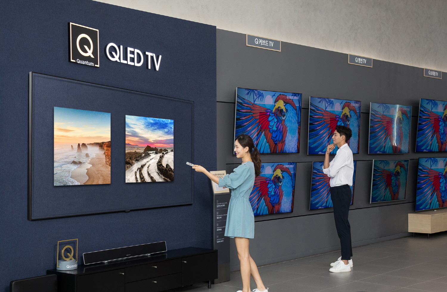 밝은 조명에서도 디테일을 정확하게 표현하는 뛰어난 화질, 빅스비로 더욱 진화한 스마트 기능 외에도 2018년형 QLED TV만의 차별화된 강점으로 인정받고 있는 매직스크린·매직케이블 기능을 직접 시연해 볼 수 있어 필요에 따라 다채로운 경험을 할 수 있다는 것이 특징이다.