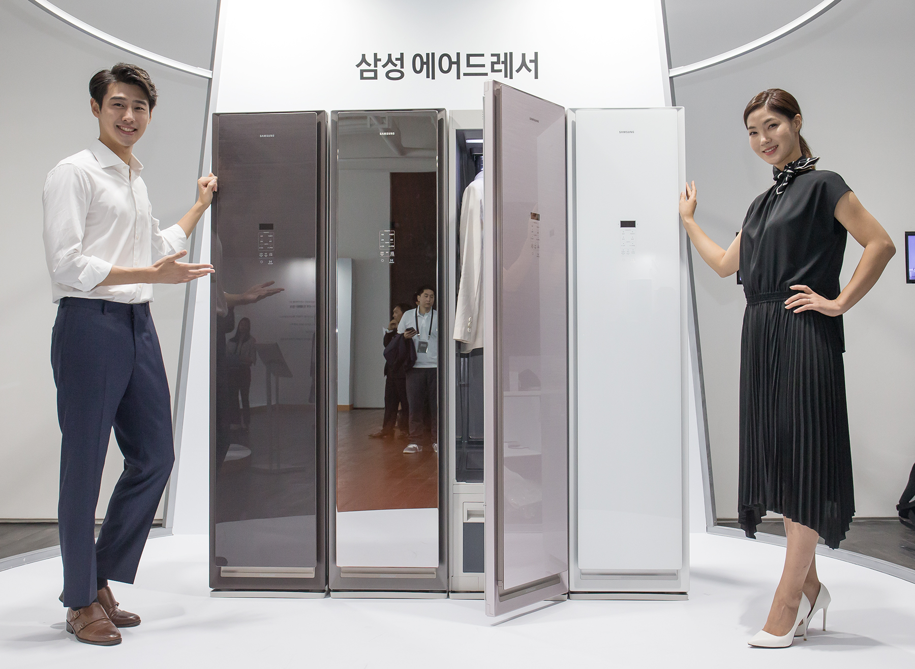 삼성전자가 이날 공개한 ‘에어드레서’는 에어·스팀·건조·청정의 4단계 전문 의류 청정 방식을 적용해 의류의 미세먼지와 냄새를 확실하게 제거해 주는 혁신 제품이다.