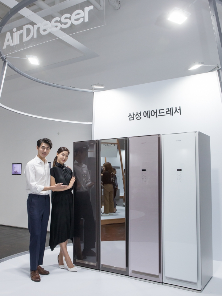 삼성전자가 이날 공개한 ‘에어드레서’는 에어·스팀·건조·청정의 4단계 전문 의류 청정 방식을 적용해 의류의 미세먼지와 냄새를 확실하게 제거해 주는 혁신 제품이다.