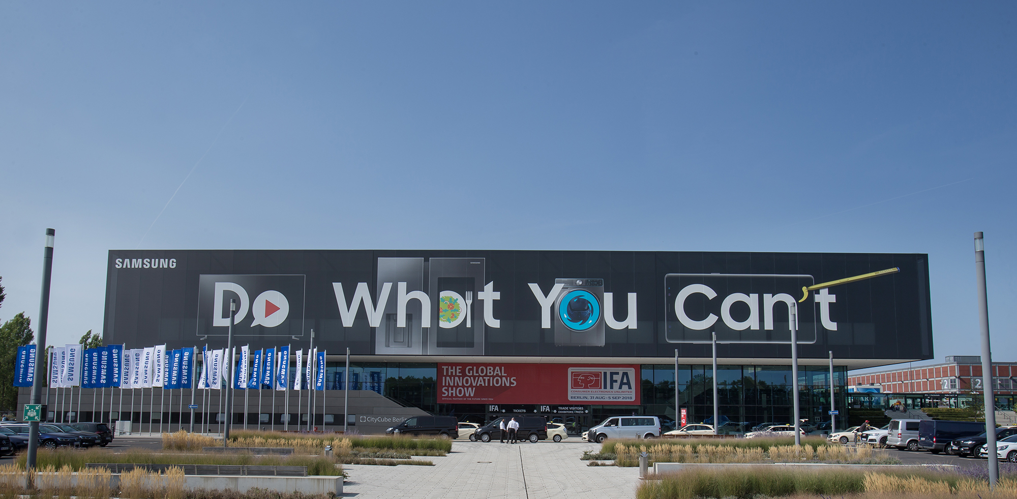 삼성전자는 메세 베를린(Messe Berlin)에 위치한 시티 큐브 베를린(City Cube Berlin)에 업계 최대 규모인 12,572㎡(약 3,800평) 면적의 전시·상담 공간을 마련하고 하반기 전략제품과 홈IoT 관련 제품을 대거 전시한다.