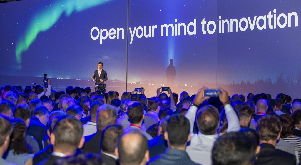 ▲ 삼성전자 김현석 대표이사가 IFA 2018 프레스 컨퍼런스에서 발표를 하고 있다.
