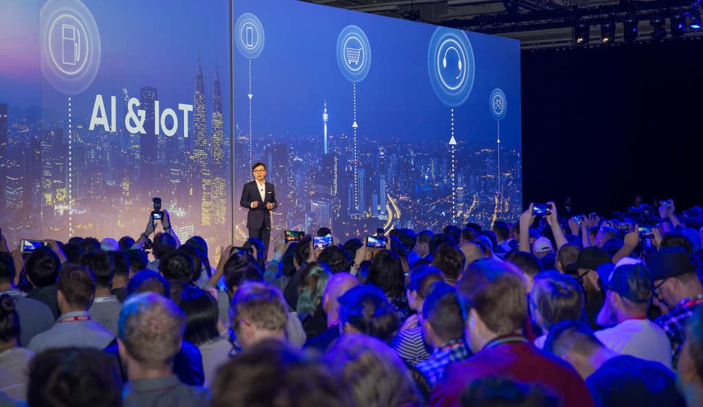 ▲ 삼성전자 김현석 대표이사가 IFA 2018 프레스 컨퍼런스에서 발표를 하고 있다.