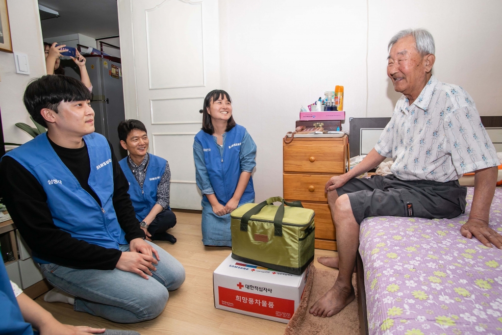 삼성전자는 추석을 앞두고 지난 3일부터 3주간 대한적십자사와 함께 전국 사회복지시설과 어려운 이웃들에게 10억원 상당의 부식품 세트를 전달하는‘희망나눔 봉사활동’을 펼치고 있다.