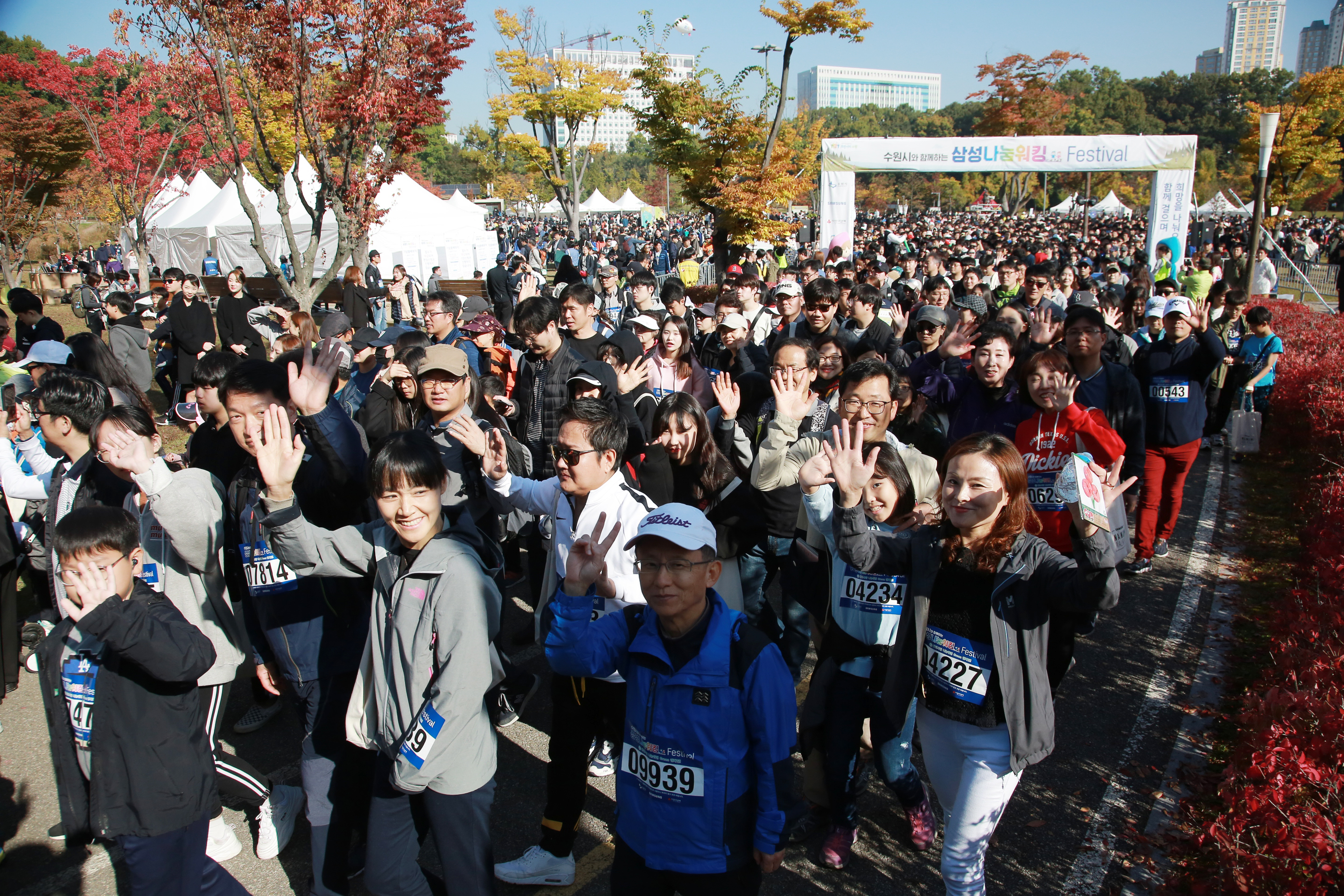 삼성전자가 20일 수원시 광교호수공원에서 수원시와 협력해 건강과 나눔문화 확산을 위한 '삼성 나눔워킹 페스티벌'을 진행했다.