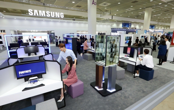 삼성전자는 '세상에 없던 라이프'라는 콘셉트로 전시장을 구성하고 관람객들이 'QLED 8K', '갤럭시 노트9', '갤럭시 A7', '에어드레서', '건조기 그랑데' 등 혁신 기술이 적용된 다양한 제품들을 직접 체험할 수 있도록 했다.