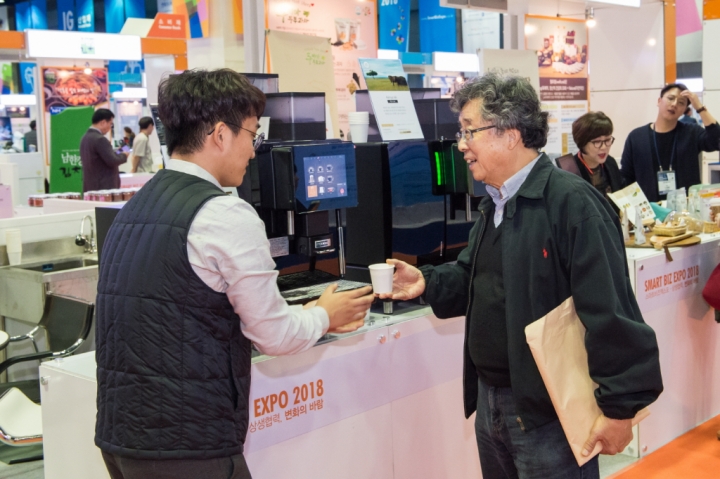 ▲ 24일 서울 코엑스에서 삼성전자가 중소기업의 신규 판로 개척을 지원하기 위해 개최한 ‘스마트비즈엑스포’에서 스마트공장 구축 지원을 받은 중소기업들이 참관객을 대상으로 제품 설명을 하고 있다.