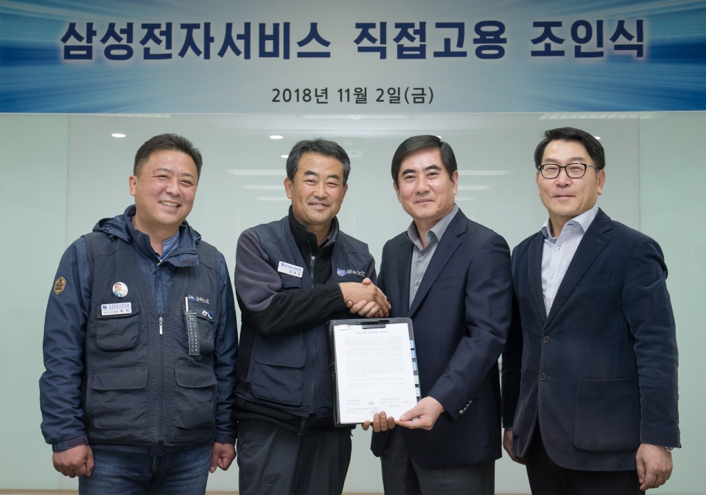 삼성전자서비스는 협력사 직원 직접고용 협상이 2일 최종 타결됐다고 밝혔다. 지난 4월 17일 직접고용 결정을 발표한 지 200일만이다.