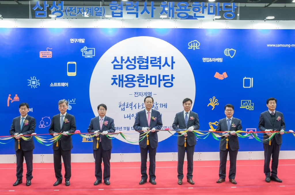 삼성전자는 삼성디스플레이·SDI·전기·SDS 와 함께 12일 서울 양재동 aT센터에서 협력사들의 우수 인재 확보를 위해 ‘2018 삼성 협력사 채용 한마당’을 개최했다.