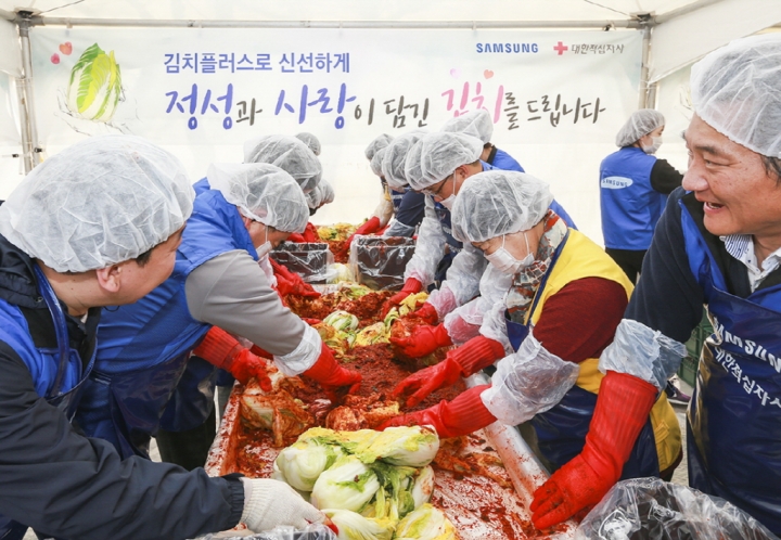 올해로 3회째를 맞은 '김치플러스 김장축제'는 대한적십자사와 함께 진행됐으며, 삼성전자 임직원 100여명이 참여해 김장 김치를 담그며 나눔을 실천했다.