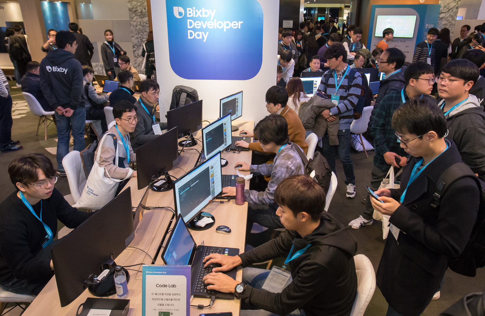▲ ‘삼성 빅스비 개발자데이’에 참석한 개발자들이 빅스비 code 프로그램을 체험하고 있다.