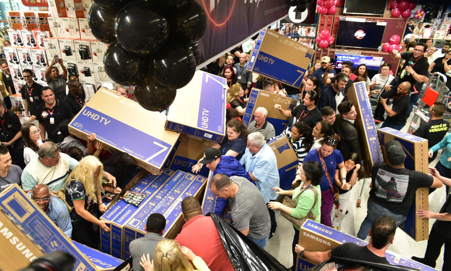 ▲ ‘블랙프라이데이’를 하루 앞둔 22일(현지시간) 브라질 상파울루에 위치한 대형 매장 ‘엑스트라(extra)’에 삼성전자 TV를 구입하기 위해 수많은 소비자들이 몰렸다.