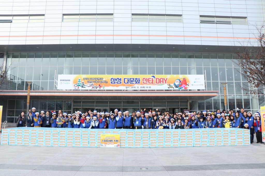구미 ‘삼성 스마트시티’ 임직원들은 20일 컨벤션센터 ‘구미코’에서 구미 다문화가족지원센터의 결혼 이민여성, 지역아동센터 관계자 등 200여명과 함께 1,500명의 지역아동센터 어린이들에게 전달할 선물을 포장했다.