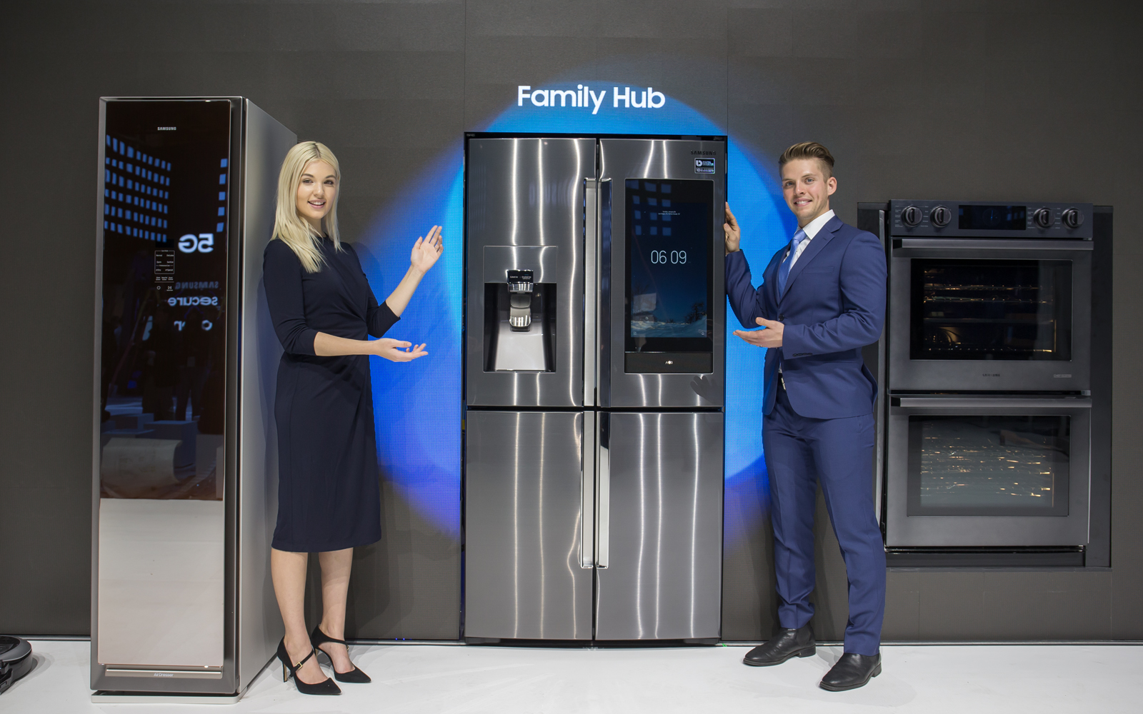 ▲ 삼성전자는 인텔리전스 플랫폼 ‘뉴 빅스비’와 IoT기술을 기반으로 에어드레서, 패밀리허브 냉장고, 스마트 오븐 등 삼성의 다양한 기기들을 연동해 ‘커넥티드 솔루션’을 제시한다.