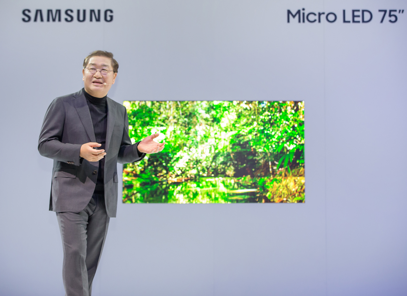 ▲ 삼성전자 영상디스플레이 사업부장 한종희 사장은 이 날 전 세계 500여명의 미디어가 참석한 가운데 ‘마이크로 LED’를 적용한 75형 스크린을 세계 최초로 공개하고, AI 시대의 스크린 혁신에 대한 비전을 공유했다.