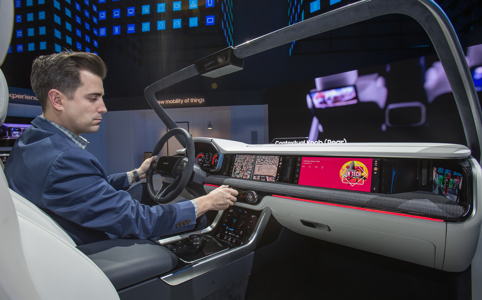 ▲ 세계 최대 전자 전시회 CES 2019가 개막한 8일(현지시간) 미국 라스베이거스 컨벤션센터(LVCC)의 삼성전자 부스에서 삼성전자 모델이 개인에게 최적화된 환경과 인포테인먼트 시스템을 제공하는 차량용 ‘디지털 콕핏 2019’를 시연하고 있다.