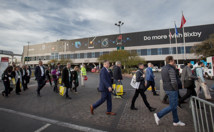 ▲ 8일부터 11일까지 세계 최대 전자 전시회 CES 2019가 열리는 미국 라스베이거스 컨벤션센터(LVCC)의 외경, 삼성전자 옥외광고.