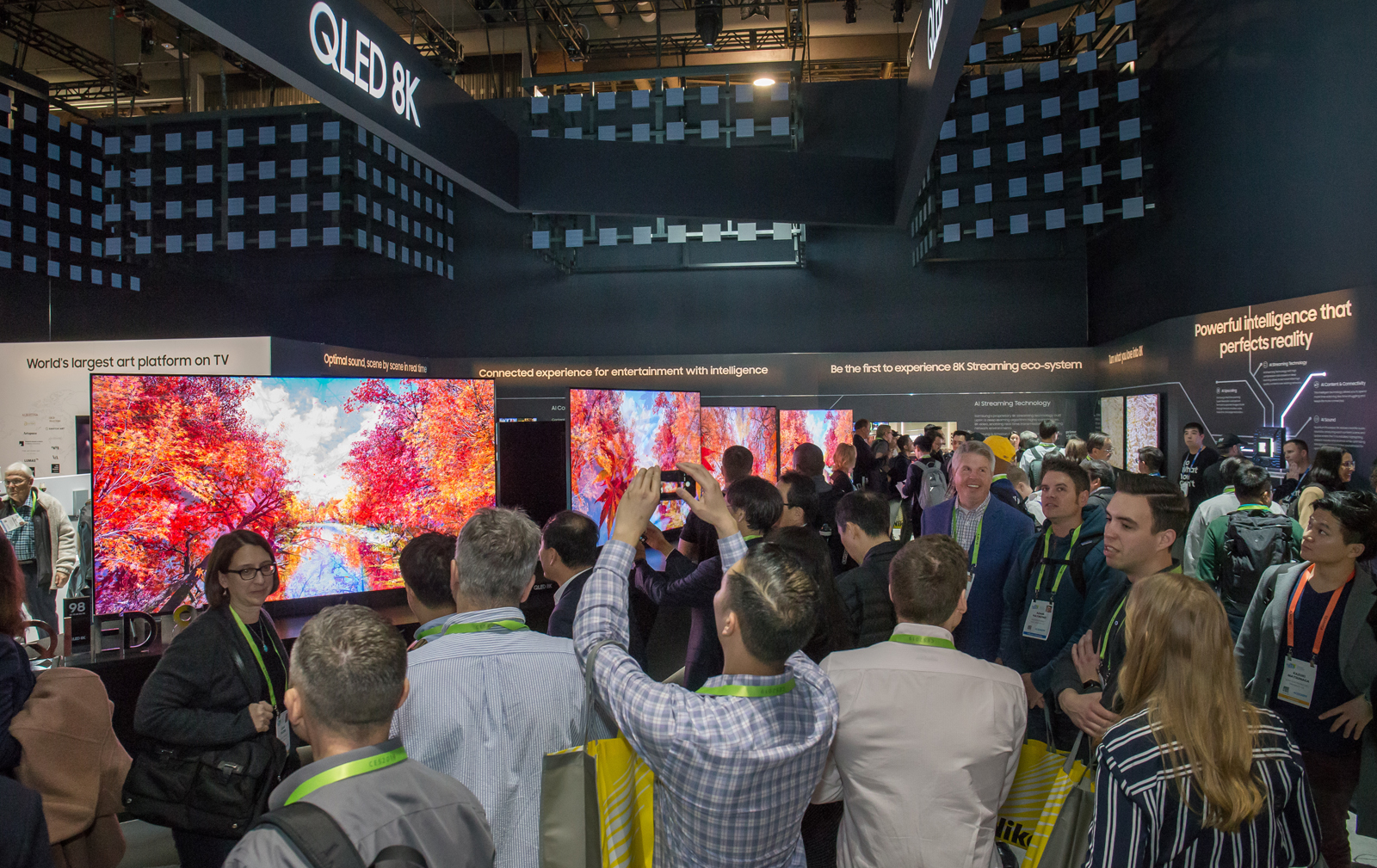 ▲ 미국 라스베이거스에서 열린 세계 최대 전자 전시회 CES2019에서 삼성전자 전시관에 방문한 관람객들이 'QLED 8K' TV의 선명한 화질을 감상하고 있다.