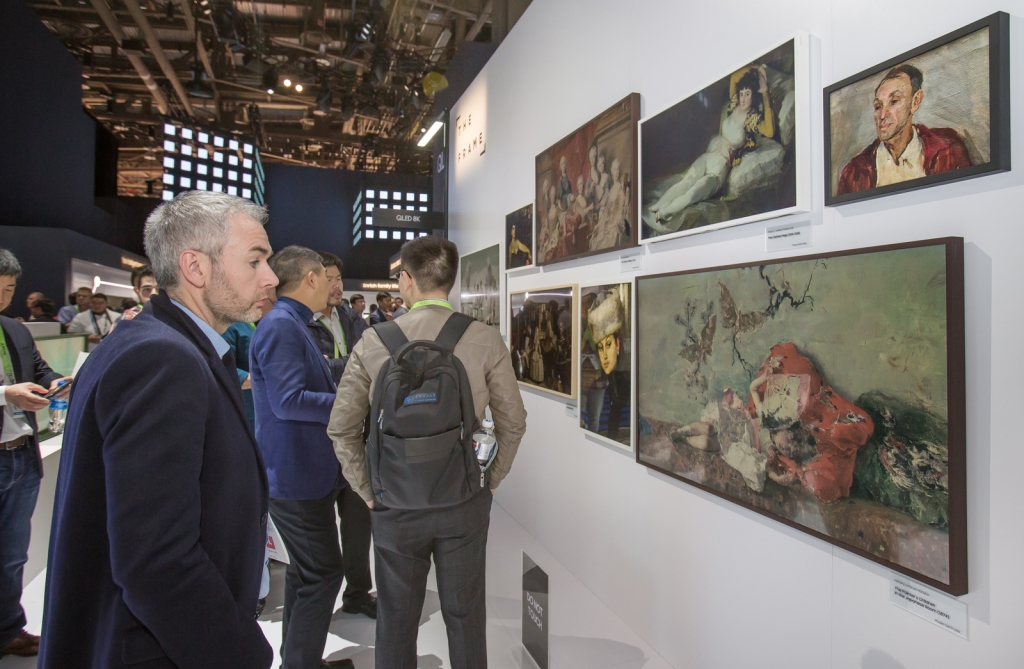 ▲ 미국 라스베이거스에서 열린 세계 최대 전자 전시회 CES2019에서 삼성전자 전시관에 방문한 관람객들이 '더 프레임' TV로 명화를 감상하고 있다. '더 프레임'은 평소 TV를 시청하지 않을 때 꺼져있는 제품의 검은 화면 대신 미술 작품을 액자처럼 보여줘 거실을 갤러리로 만들어준다.