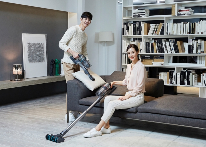 ▲ 삼성전자가 무선 청소기 업계 최고 수준인 200W(와트) 흡입력을 구현하고 차별화된 미세먼지 배출 차단 시스템을 갖춘 프리미엄 무선청소기 ‘삼성 제트’를 출시한다. 삼성전자 모델들이 무선 청소기 '삼성 제트'를 소개하고 있다.