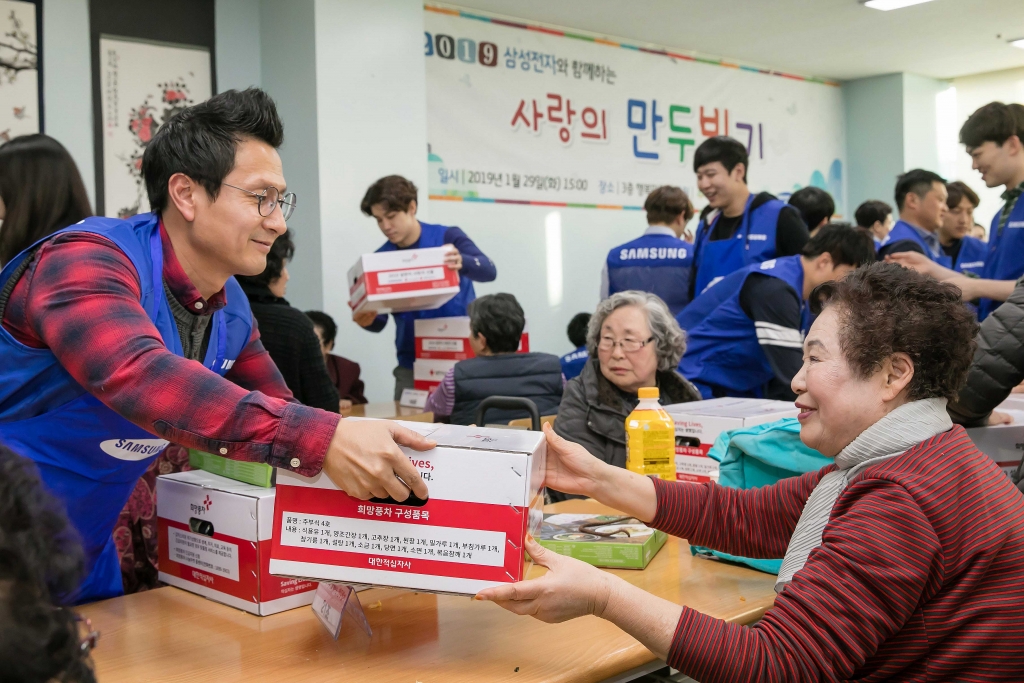 삼성전자와 대한적십자사는 1월 14일부터 29일까지 2주간 노인복지관, 지역아동센터 등 전국 276개 사회복지시설과 어려운 이웃들에게 10억원 상당의 부식품 세트를 전달했다.