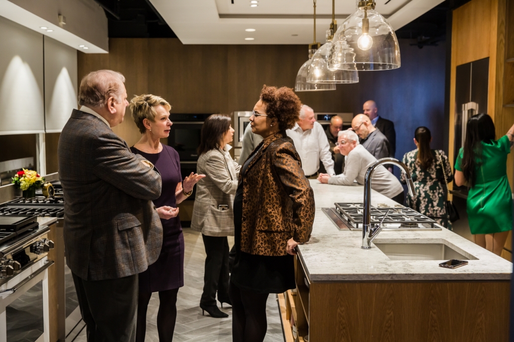 ▲ 30일과 31일(현지시간) 양일간 열린 쇼룸 오프닝 행사에서 미국 동부 지역 주요 거래선과 디자인 전문 미디어, 키친 디자이너 등 업계 관계자들이 ‘모더니스트 컬렉션’과 ‘헤리티지 컬렉션’ 등 데이코 빌트인 주방 가전 제품들을 살펴보고 있다.