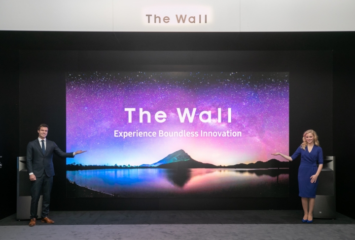 ▲ 삼성전자가 네덜란드 암스테르담에서 열리는 유럽 최대 디스플레이 전시회 ‘ISE 2019’에 참가해 8K 사이니지 등 상업용 디스플레이 신제품을 대거 공개한다. 삼성전자 모델들이 2019년형 ‘더 월’ 292인치(8K)를 소개하고 있다.