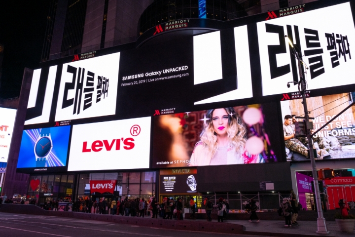 삼성전자가 '갤럭시 언팩 2019'을 앞두고 전 세계 주요 랜드마크에서 한글 옥외광고를 진행한다.