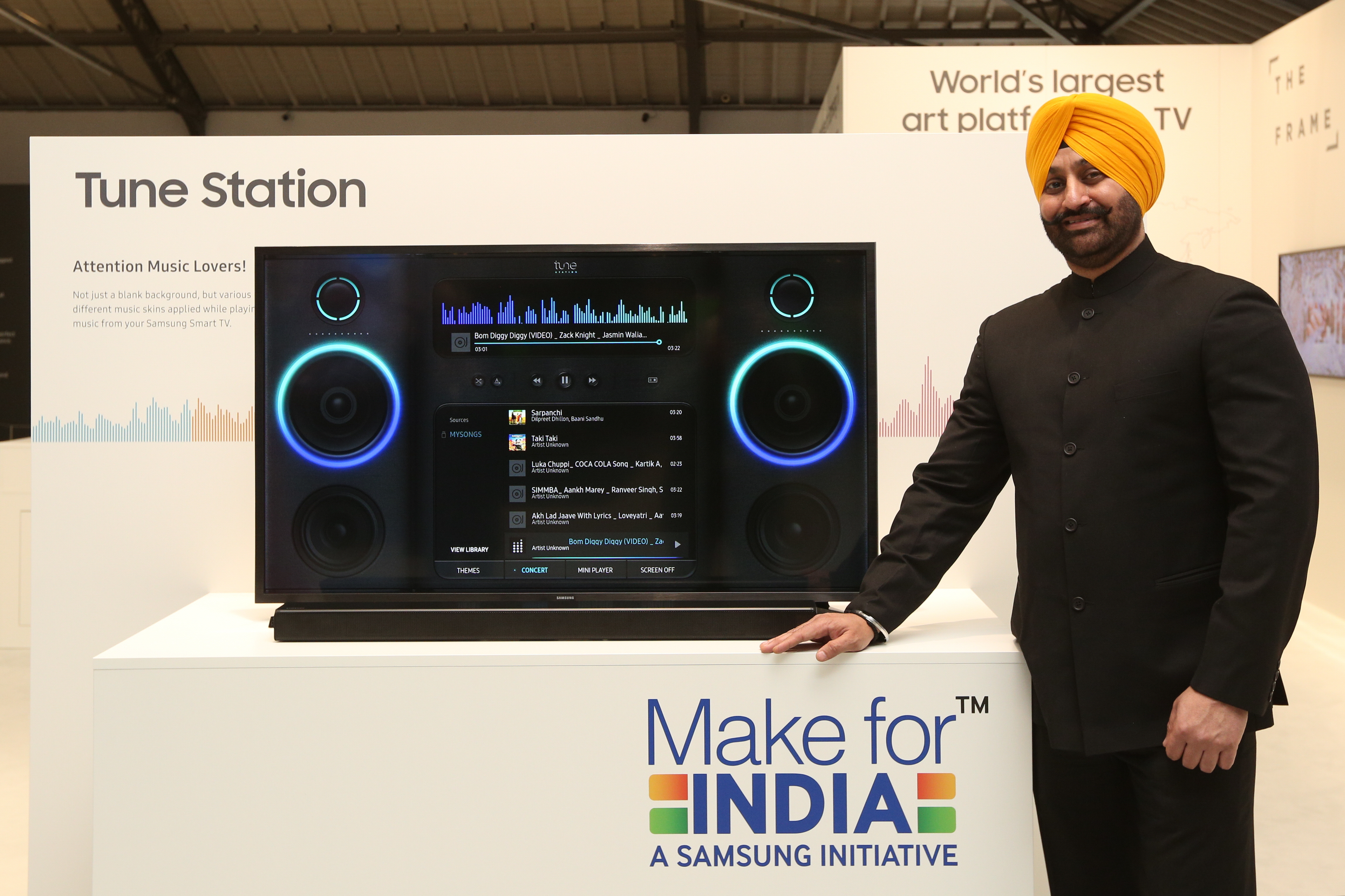 ▲ 삼성전자 모델이 인도 소비자들의 취향을 고려한 ‘뮤직 TV’ 기능을 선보이고 있다.