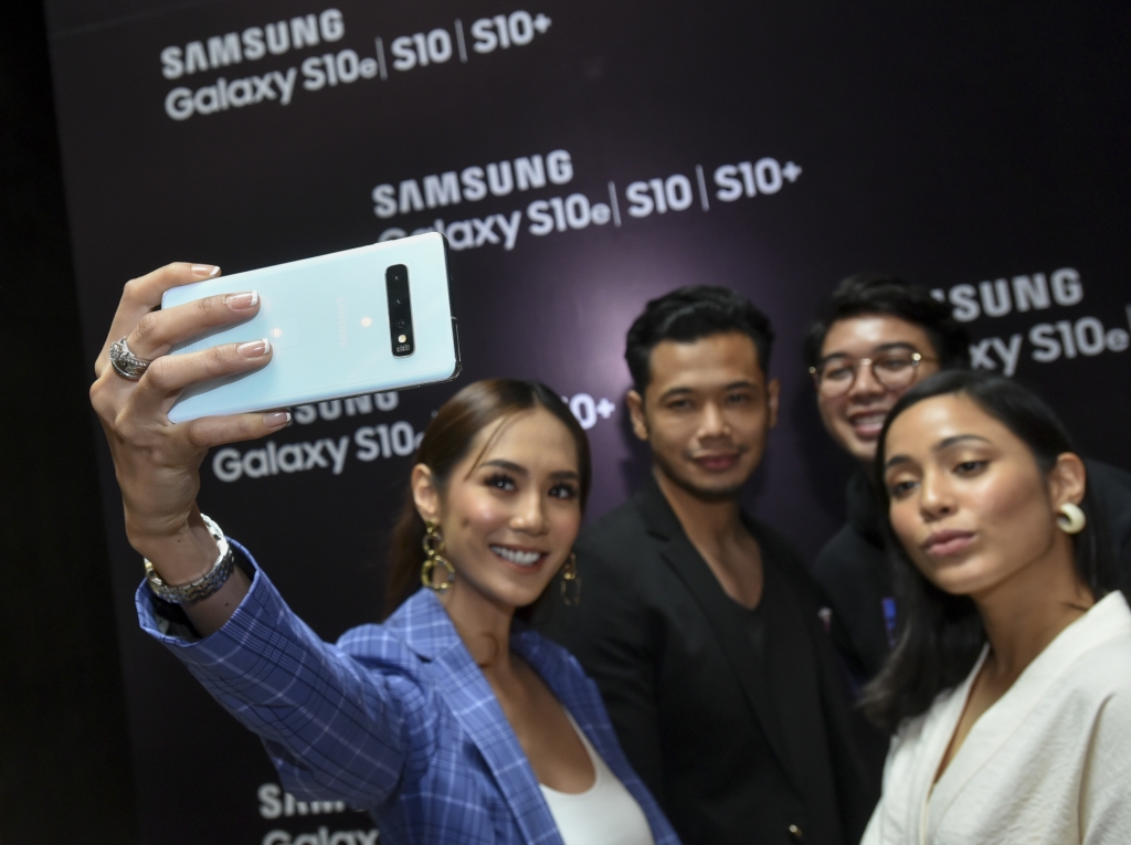 ▲ 3월 1일(현지시간) 말레이시아 겐팅 하이랜즈의 대형 쇼핑몰 스카이 애비뉴(Sky Avenue)에서 미디어, 소비자 등 300여 명을 대상으로 진행된 ‘갤럭시 S10’ 출시 행사에서 참석자들이 제품을 체험하고 있다.