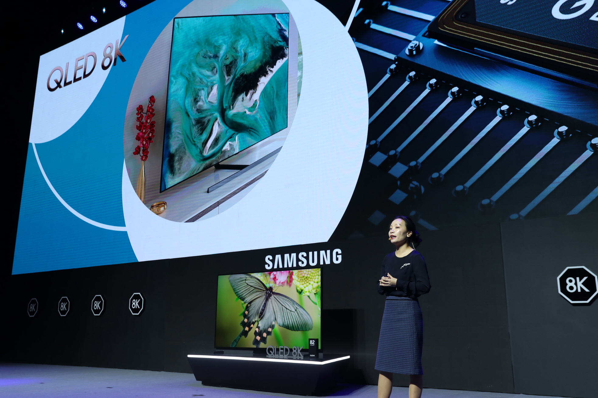 ▲ 삼성전자 직원이 중국에 출시하는 2019년형 QLED 8K에 대해 소개하고 있다.
