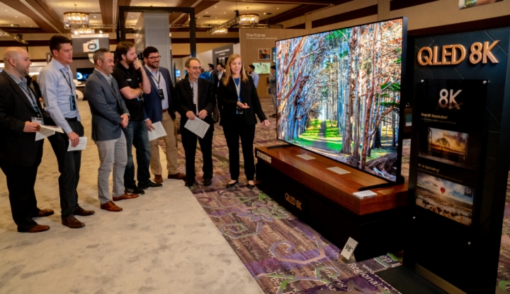 ▲ 삼성전자 직원이 미국 주요 거래선들에게 삼성 QLED 8K를 소개하고 있다.