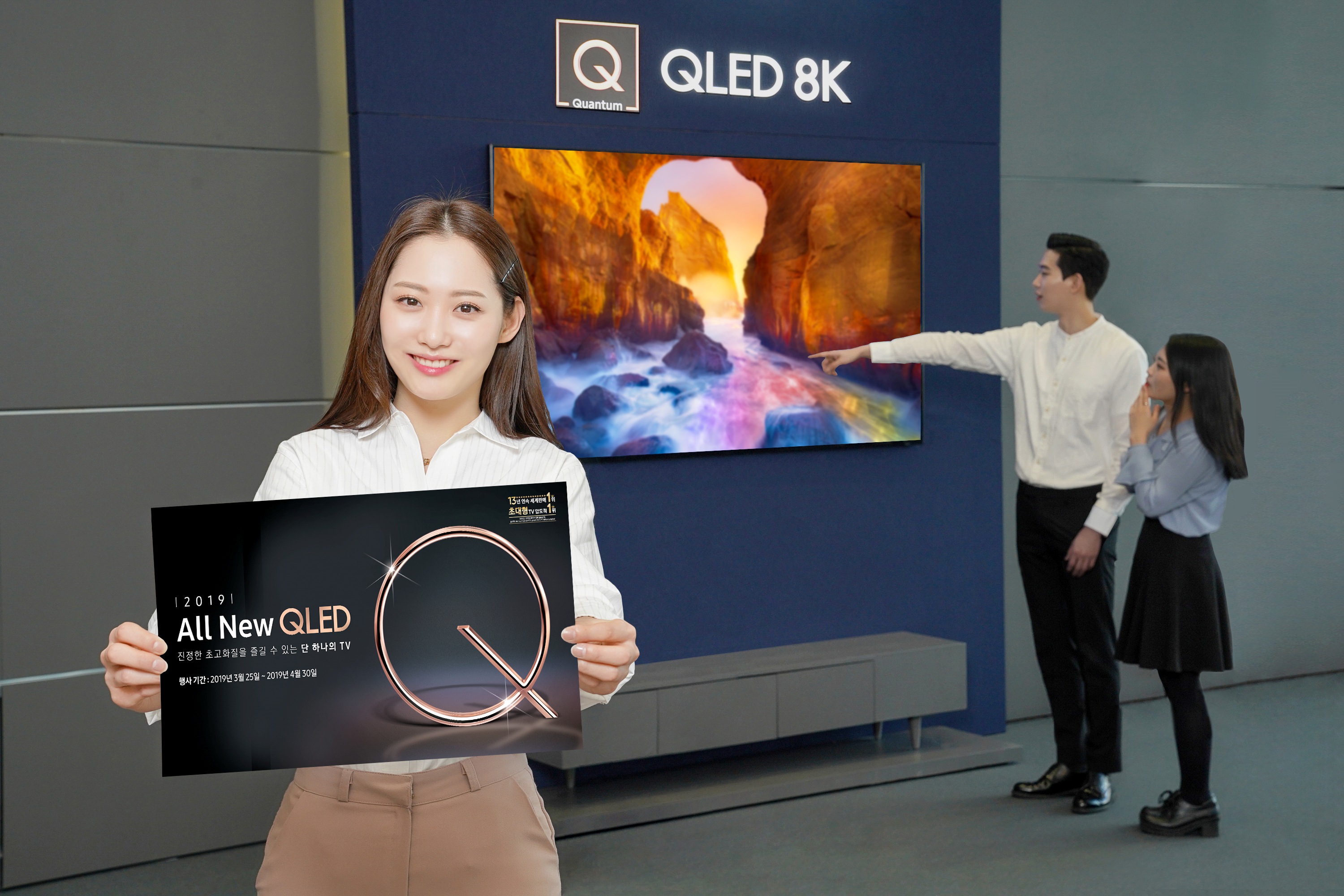▲ 삼성전자 모델들이 삼성 디지털프라자 삼성대치점에서 화질에서 스마트 기능까지 완전히 새로워진 2019년형 ‘QLED TV’를 소개하고 있다.