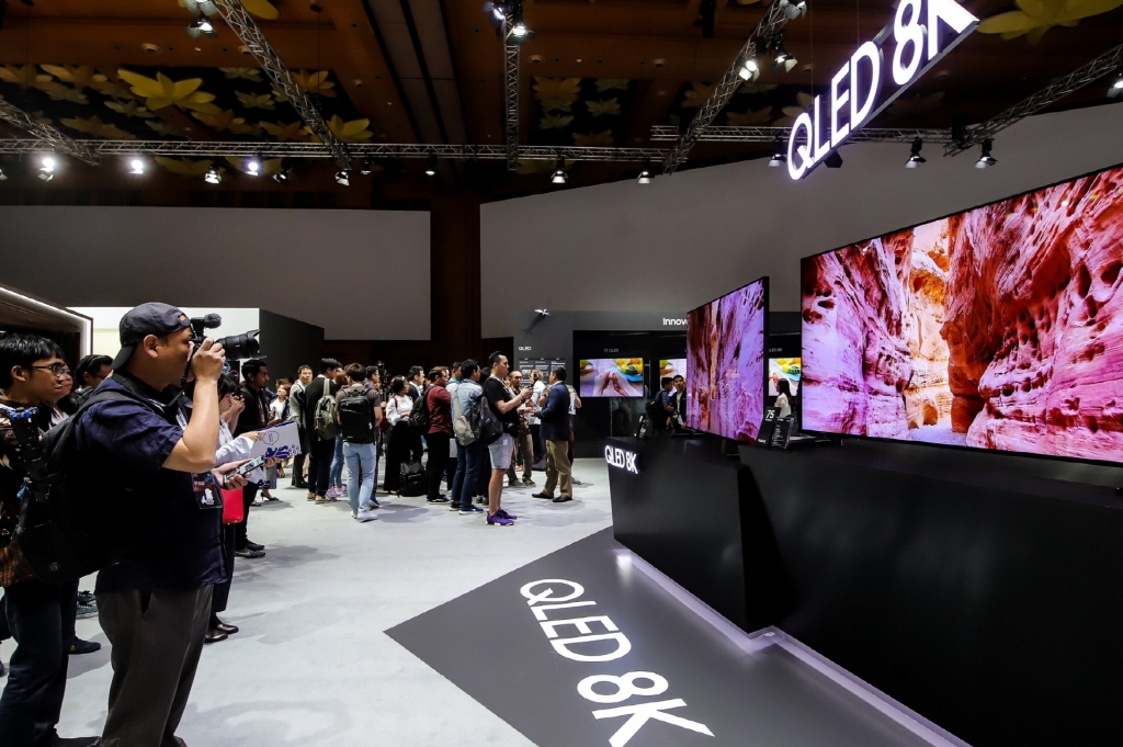 ▲ ‘삼성 동남아 포럼 2019’에서 삼성전자의 주요 거래선과 현지 미디어들이 ‘QLED 8K’ TV 신제품을 살펴보며 촬영하고 있다.