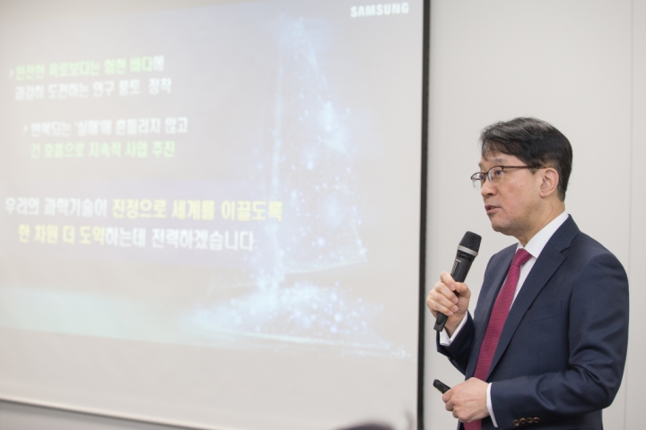 ▲ 10일 열린 삼성미래기술육성사업 기자간담회에서 김성근 삼성미래기술육성재단 이사장이 발표를 하고 있다.