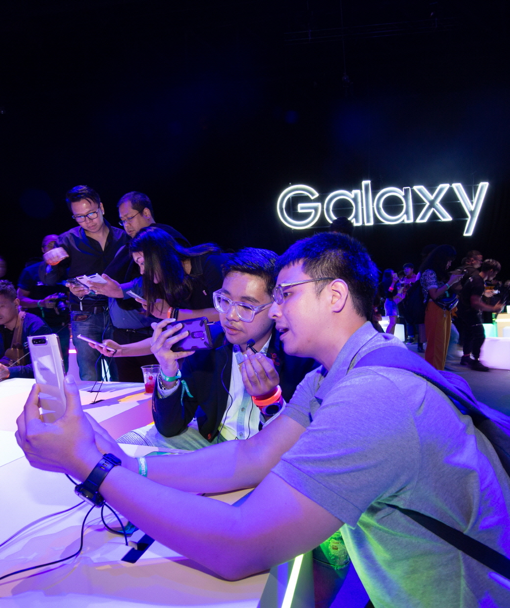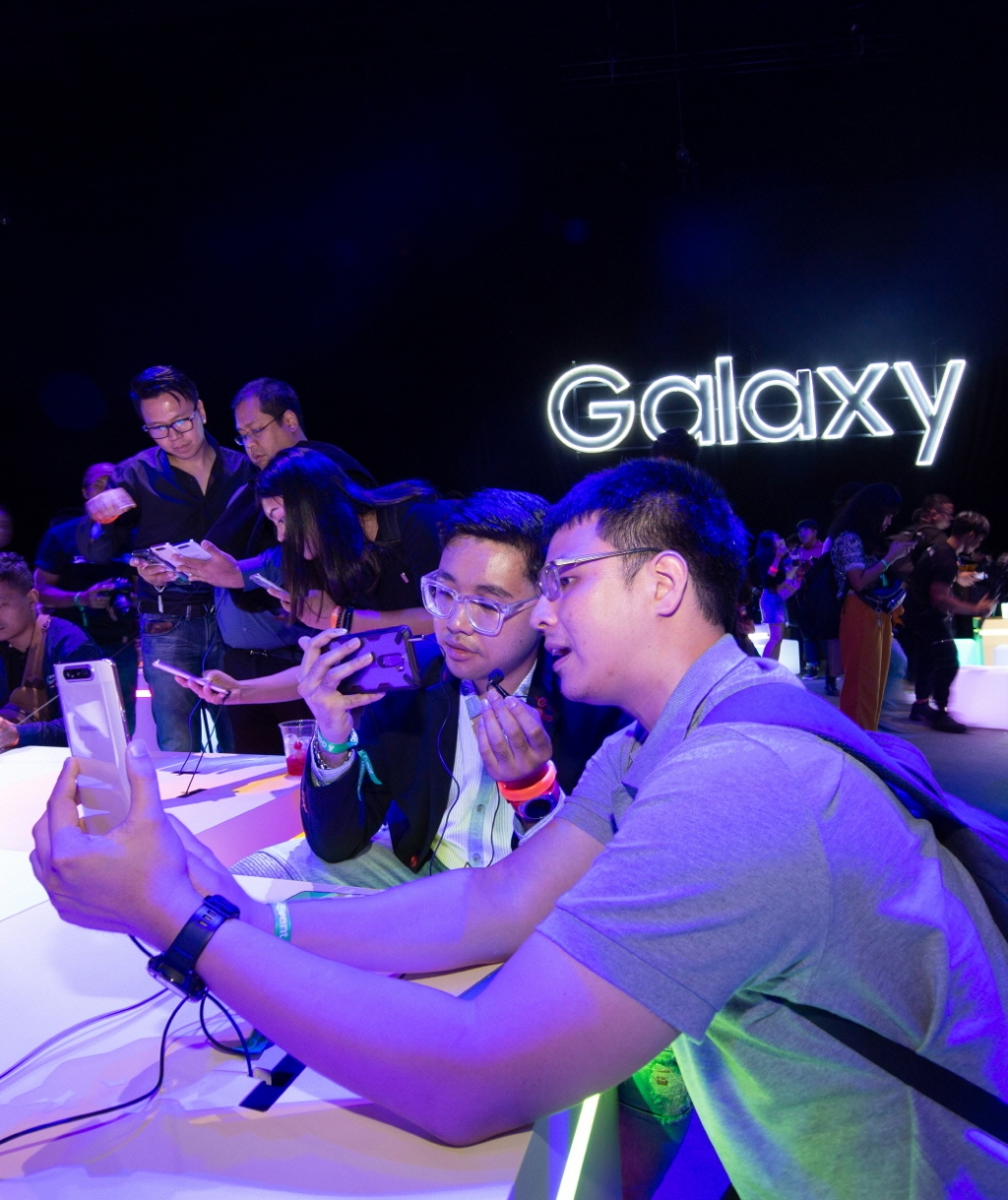 ▲ 4월 10일(현지시간) 태국 방콕에서 진행된 ‘A 갤럭시 이벤트’ 참석자들이 ‘갤럭시 A80’와 ‘갤럭시 A70’를 체험하고 있는 모습