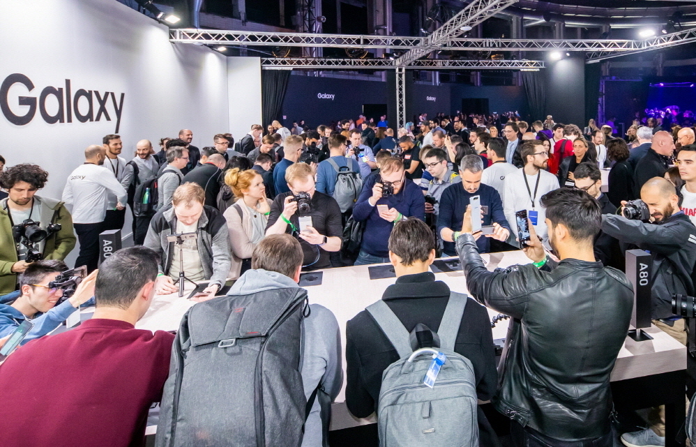 ▲ 4월 10일(현지시간) 이탈리아 밀라노에서 진행된 ‘A 갤럭시 이벤트’ 참석자들이 ‘갤럭시 A80’와 ‘갤럭시 A70’를 체험하고 있는 모습
