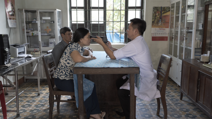 ▲ 지난해 ‘삼성 투모로우 솔루션’ 임팩트 부문 대상을 수상한 ‘프로젝트봄’팀의 휴대용 안구질환 검진기기를 활용해 베트남 광찌성 보건소에서 안과 의사가 환자를 진찰하고 있다.