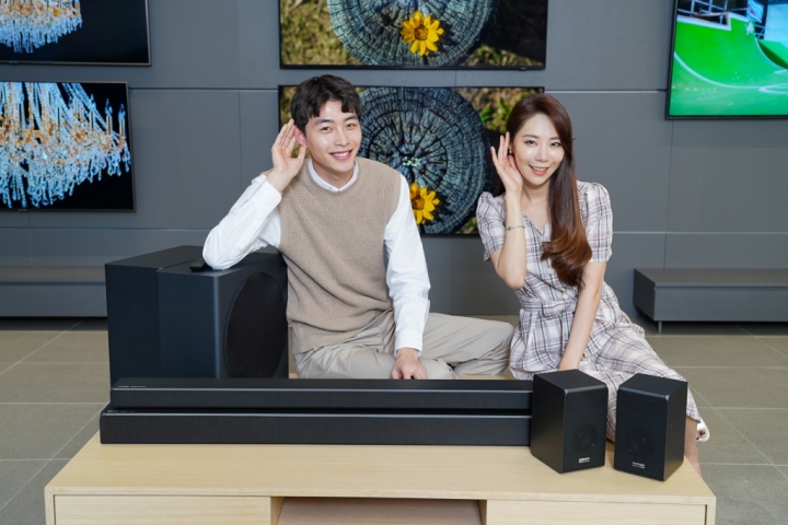 ▲ 삼성전자가 14일 QLED TV와 함께 사용하기 좋은 사운드바 ‘Q시리즈’ 4종을 삼성 하만카돈 브랜드로 국내 시장에 출시한다. 삼성전자 모델이 7.1.4채널을 지원하는 HW-Q950R과 3.1.2채널을 지원하는 HW-Q750R을 소개하고 있다. ‘Q시리즈’ 사운드바에는 입체 음향 기술인 돌비사의 애트모스와 DTS사의 DTS:X를 탑재하여 전후좌우뿐 아니라 마치 천장 위에서 소리가 쏟아져 내리는 듯한 입체적인 사운드를 경험할 수 있다. ‘Q시리즈’ 사운드바는 출고가 기준 HW-Q950R이 180만원, HW-Q850R이 130만원, HW-Q750R이 90만원, HW-Q650R이 60만원이다.