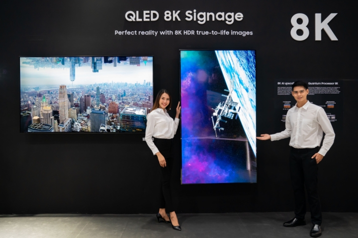 ▲ 삼성전자가 15일부터 17일까지 태국 방콕에서 개최되는 디스플레이 전문 전시회 ‘동남아 인포콤 2019’에 참가해 퀀텀닷 소재 기술과 8K 고해상도를 접목해 최고의 화질을 구현한 상업용 ‘QLED 8K 사이니지’를 전시한다.