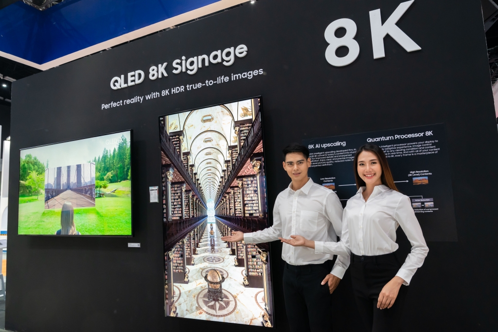 ▲ 삼성전자가 15일부터 17일까지 태국 방콕에서 개최되는 디스플레이 전문 전시회 ‘동남아 인포콤 2019’에 참가해 퀀텀닷 소재 기술과 8K 고해상도를 접목해 최고의 화질을 구현한 상업용 ‘QLED 8K 사이니지’를 전시한다.